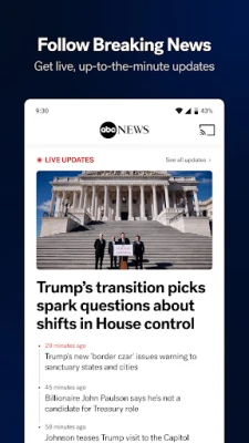 Discover the power of staying informed with the ABC News app, your gateway to 24/7 breaking news coverage. Immerse yourself in the pulse of current events through live-streaming from ABC News Live, while keeping up with politics, weather, health, business and local headlines, all from America’s #1 news source.