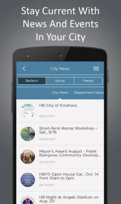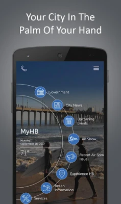 Become a civic citizen and engage with your city like never before by downloading the official app. With features like Government, Beach Information, Experience HB, City News, Upcoming Events, Services, and Map you'll find it easier than ever to stay connected with the City of Huntington Beach with just a few taps on your mobile device.